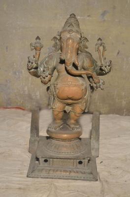 | Description / विवरण | Standing in abanga, 4 hands parasu, pasa, tusk and motaga. Trunk touching the motaga. |