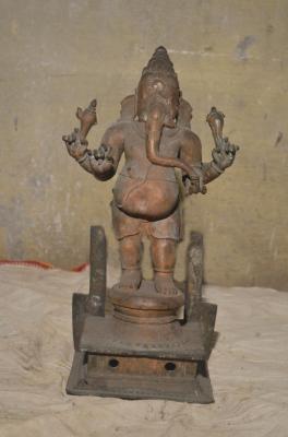 | Description / विवरण | Standing in abanga, 4 hands parasu, pasa, tusk and motaga. Trunk touching the motaga |