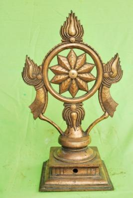 | Description / विवरण | Wheel is personified as God and embedded in the pedestal for worship. The circle on the chakra is decorated with fire balls. |