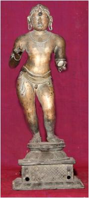 | Description / विवरण | Standing on padma peetam. Two hands having talas musical instruments wearing no dress. Only idaikatcham . long ears with big holes. |