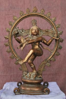 | Description / विवरण | Dancing on Apasmara over padma peetam. Four hands with usual features. Six hair locks are found on eother side. Tiruvasi is decorated with 21 flame motifs. |