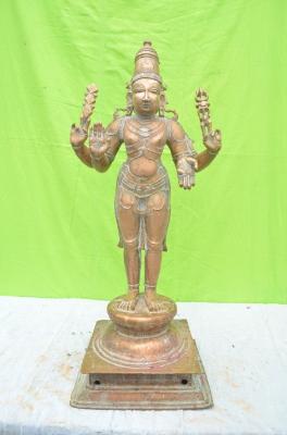 | Description / विवरण | Standing in samabanga on the padma peetam. Wearing karanta makuta. 4 hands. Upper hand holds sakthi and vajjra. Lower hands are in abhaya and varadha channavira mutra. |