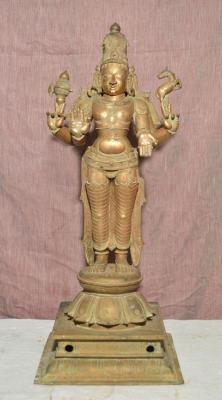 | Description / विवरण | Siva standing on Urdhava padma peetam with four hands. Upper hands carry Mazhu and deer. Lower hands are in Abhaya and Varadha poses. Wearing jata makuta on the head. The lower garments is with decoration at the end. |