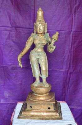 | Description / विवरण | its standing on the patma pita in tribanga style, having girita makuta, flower on the left hand and magalya also. |