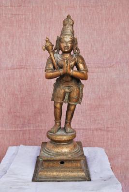 | Description / विवरण | Standing on padma peetam with two hands in Anjali hastha pose. Axe is found on the right shoulder. Jata Makuta adorns the head. |