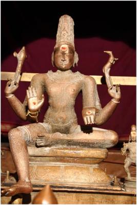 | Description / विवरण | Siva sitting on padma peetam. Four hands. Upper hands with axe and deer. Lower hands carry abhaya and varada mudra. |