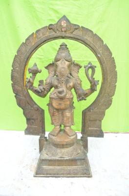 | Description / विवरण | Standing in abanga on the padma peetam. 4 hands parasu, pasa, tusk and motaga. Curled Trunk in the rightern side having the motaga. Lower garment up to knee. A Triruvasi is fixed along with the peetam. |