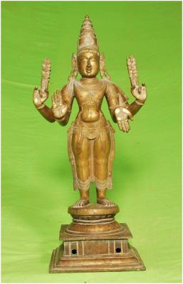 | Description / विवरण | Muruga standing on Padma Peeta. 4 hands. Upper hands carry Sakthi and vazra. Lower hands are in Abhaya and Varada posture. |