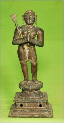 | Description / विवरण | Standing on Padma Peetam with Anjali hastha posture. Holding Uzhavaram by the right side of the shoulder. |