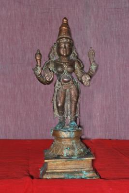 | Description / विवरण | Standing on Padma peetam with four hnds. The upper hands carry Ankusa and Pasa. Lower hands are with Abhaya and Varadha poses. |