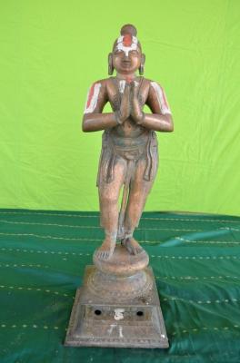 | Description / विवरण | Standing on padma peetam. The hands are in Anjali hastha posture. Bun shaped hair dress. |