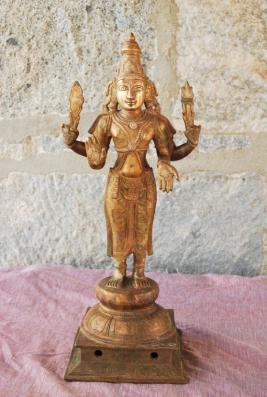 | Description / विवरण | Standing on padma peetam with four hands. The upper hands carry Sakthi and Vajra. Lower hands are with Abhaya and Varadha poses. |