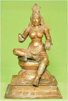 | Description / विवरण | Devi sitted on his left with two hands. Right leg in folded positon. The idol is detachable and individual. |
