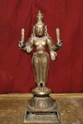 | Description / विवरण | Standing on padma peetam with four hands. Upper hands are with sakthi and Vajram. Lower hands are with Abhaya and Varadha poses. |