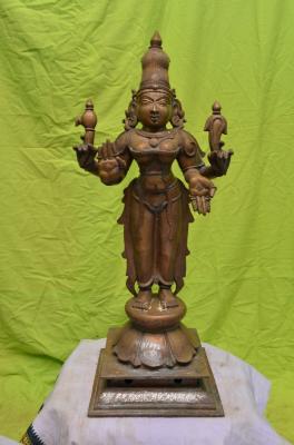 | Description / विवरण | Standing on padma peetam with four hands. Upper hands carry ankusa and pasa. Lower hands are in Abhaya and Varadha pose. Wearing jata makutam on the head. |