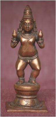 | Description / विवरण | Skanda is in standing posture carry flowers in the hands. Wearing karanda makuta on the head. |