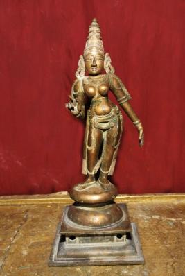 | Description / विवरण | Devi standing on Padma Peetam with two hands. Right hand is in Kataka pose and left hand in lolahastha posture. Karanda makuta on the head. |