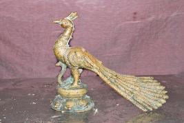 | Description / विवरण | Peacock standing on padma peetam with a snake under its feet. Sharp beak. The feathers are long and beautifully carved. |