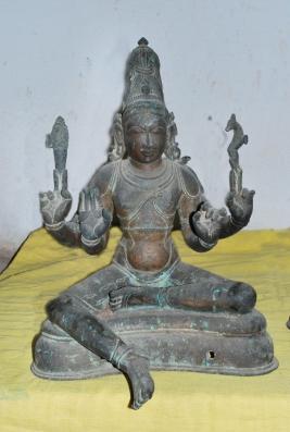 | Description / विवरण | Siva seated on the padma peetam with left leg folded and right leg in hanging position. Four hands with usual features. Jata Makuam on the head. |