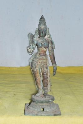 | Description / विवरण | Standing on padma peetam with two hands. Right hand has flower and left hand in lolahastha posture. Karanta makuta on the head. |
