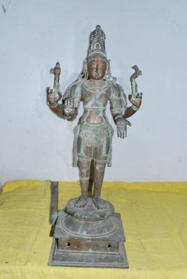 | Description / विवरण | Standing on padma peetam with four hands. Four hands depicted with usual features. Jata makuta adorn the head. |