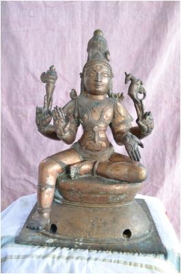 | Description / विवरण | Sitting on padma peetam with left leg folded and right leg in hanging position. Four hands with usual attributes. Jata makutam is on the head. |