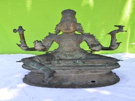| Description / विवरण | Siva sitting on a oval shaped peetam. His left leg folded and the right leg in hanging position. Four hands. Upper hands carry mazhu and deer. Lower hands are in Abhaya and kataka mudra. Ornamented long ears. Wearing Jata makuta. |