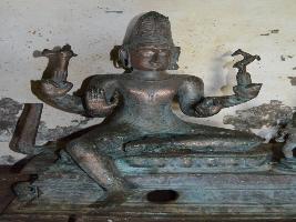 | Description / विवरण | Siva sitting on padma peetam. His right leg folded and the left leg in hanging position. Having four hands. Upper hands carry mazhu and deer. Lower hand shows Abhaya and Kataka mudras. Wearing jata makuta. |