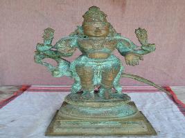 | Description / विवरण | Standing on padma peetam with four hands. Upper hands carry Vajra and Sakti. Lower hands with Abhaya and Varadha mudra poses. Wearing kirita makutam. Lower garments. Long ornamented ears. |