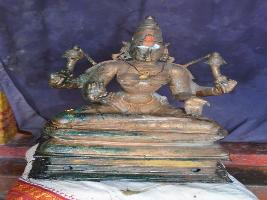 | Description / विवरण | Devi sitting on the padma peetam in padmasana pose. Having four hands. Upper hands carry flowers and the lower hands are in Abhaya and Varadha mudras. Wearing Kirita makutam. Brest covered with katchai. |