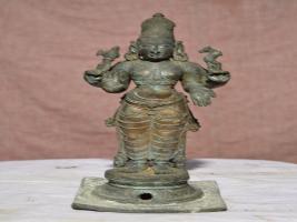 | Description / विवरण | Standing on padma peetam in samabhanga pose with four hands. The upper hands carry Mazhu and deer. Lower hands are in Abhaya and Varadha pose. Makara kuntalam on the ears. Wearing jata makutam on the head. |