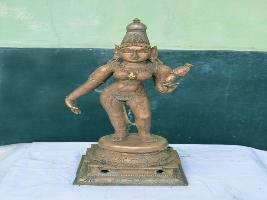 | Description / विवरण | Standing on padma peetam in Tribhanga posture. Two hands with lotus flower in the left and lola hastha pose to the right.wearing kirita makutam. Long ears with ornamentations. |