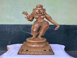 | Description / विवरण | Standing on the padma peetam in Tribhanga style. Two hands. Right holding a flower and the left in lola hastha pose. Bun shaped hair dress.Lower garments. |