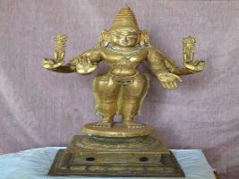| Description / विवरण | Standing on padma peetam with four hands. Upper hands with Sakthi and vajram. Lower hands with Abhaya and Varadha pose. Karanta makutam is on the head. |