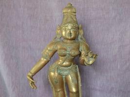 | Description / विवरण | Standing on padma peetam with two hands. Left hand in kataka mudra and right hand in lola hastha pose. Kujabhanda is present. Kesa bhandam is the head dress. |