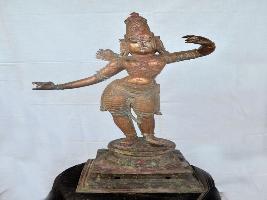 | Description / विवरण | Standing on the padma peetam in Tribhanga style. Two hands in the position of holding a bow. But, the bow is missing. Wearing kirita makutam. A basket for the arrows is tied to the back of his right sholder. |