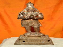 | Description / विवरण | Standing on the padma peetam in Tribhanga pose with two hands in Anjali hastha pose. An axe placed on the right shoulder. Makara kuntalam adorns the ears. Wearing Jata makutam on the head. Waist dress is up to knee only. |