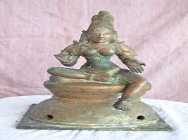 | Description / विवरण | Sitting on padma peetam with right leg folded and left leg in hanging position. Two hands with kataka and Abhaya mutra poses. Jata Makutam is on the head. |