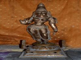| Description / विवरण | Standing on padma peetam in Tribhanga pose with two hands. Her right hand in kataka mutra and the left hand in lola hastha posture. Devoid of kujha bhandam. Wearing karanta makutam on the head. |