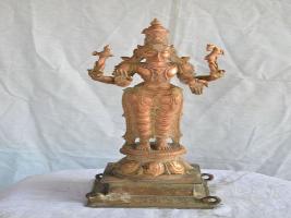 | Description / विवरण | Standing on padma peetam in a samabhanga pose with four hands. The upper hands carry mazhy and deer. The lower hands are in Abhaya and Varadha mutra poses. Kesa bhandam is the head dress. |
