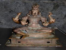 | Description / विवरण | Sitting on padma peetam with four hands. The left leg folded and the right leg in hanging position. The upper hands are with axe and deer. Lower hands are in Abhaya and Varadha mutra poses. Wearing jata makutam on the head. |