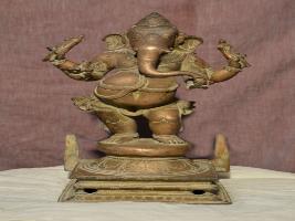 | Description / विवरण | Standing on padma peetam with four hands. Upper hands with ankusam and pasa. Lower hands are with a broken tusk and a fruit. Udhara bhandam abd yagno pavitha is found as a long strip. Wearing karanta makutam on the head. |