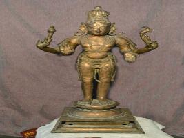| Description / विवरण | Standing on padma peetam with four hands. The upper hands are with an axe and deer. Lower hands are in Abhaya and Varadha mutras. Makara kuntalam on the ears. Wearing jata makutam on the head. |
