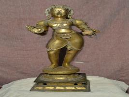 | Description / विवरण | Standing on padma peetam with two hands. The right hand is with a rudraksha garland and the left hand having a palm leaf manuscript. The head dress is in jatabara shape. |