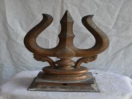 | Description / विवरण | Trisula is fixed on padma peetam over square pedestal. It is decorated with floral designs and supported by creepers from the pedestal. |