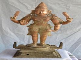 | Description / विवरण | Standing on the padma peetam with four hands. The upper hands are with Sakthi and Vajram. Lower hands are in Abhaya and Varadha pose. Makara kuntalam on the ears and wearing karanta makutam on the head. Waist dress is up to the thigh. |