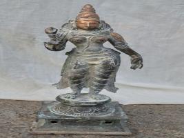 | Description / विवरण | Standing on padma peetam in Tribhanga posture with two hands. The right hand holds a flower while the left hand in lola hastha pose. Makara kuntalam on the ears. Devoid of kujha bhandam. Wearing karanta makutam on the head. Waist dress is highly ornamented and extended up to the feet. |
