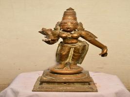 | Description / विवरण | Standing on padma peetam in Tribhanga posture with two hands. The right hand holds a flower while the left hand in lola hastha pose. Devoid of Kujha bhandam. Wearing karanta makutam on the head. |