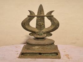| Description / विवरण | Trisula is fixed on padma peetam over a square pedestal. At the top, the tip of the Trisula is tied by a strip. The lower part of the Trisula is decorated with creepers. |
