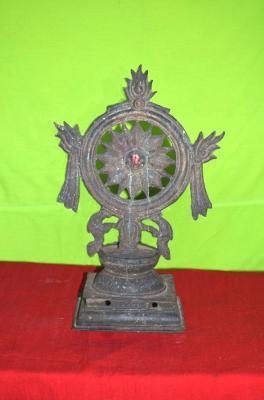 | Description / विवरण | Cakarathalvar on the pedestal. Fire flames are shown. |